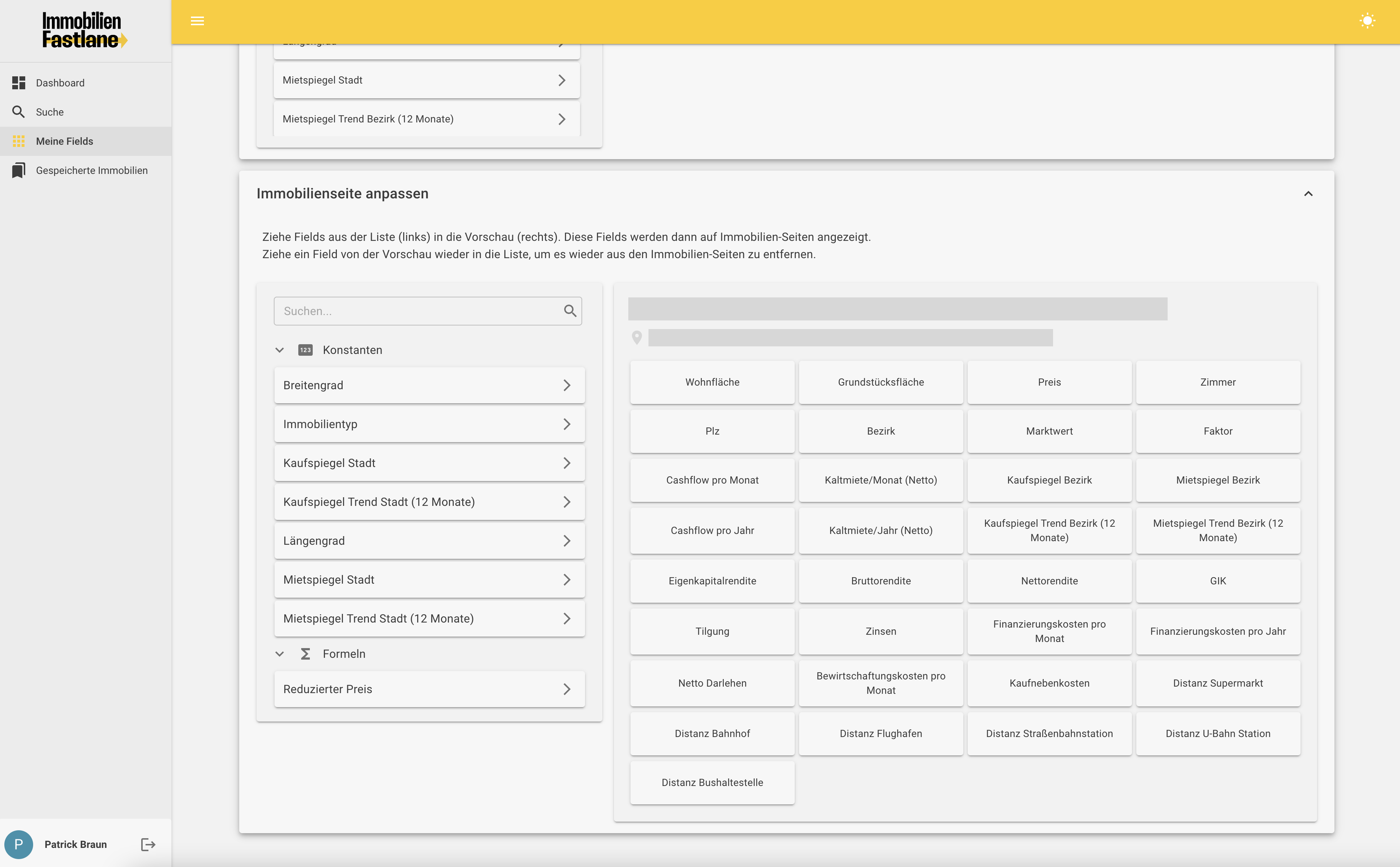 Du kannst auch die Werte, die Dir angezeigt werden, wenn Du eines der Exposés in der Liste anklickst, anpassen. Scroll' dazu einfach etwas nach unten zur Option "Immobilienseite anpassen".
